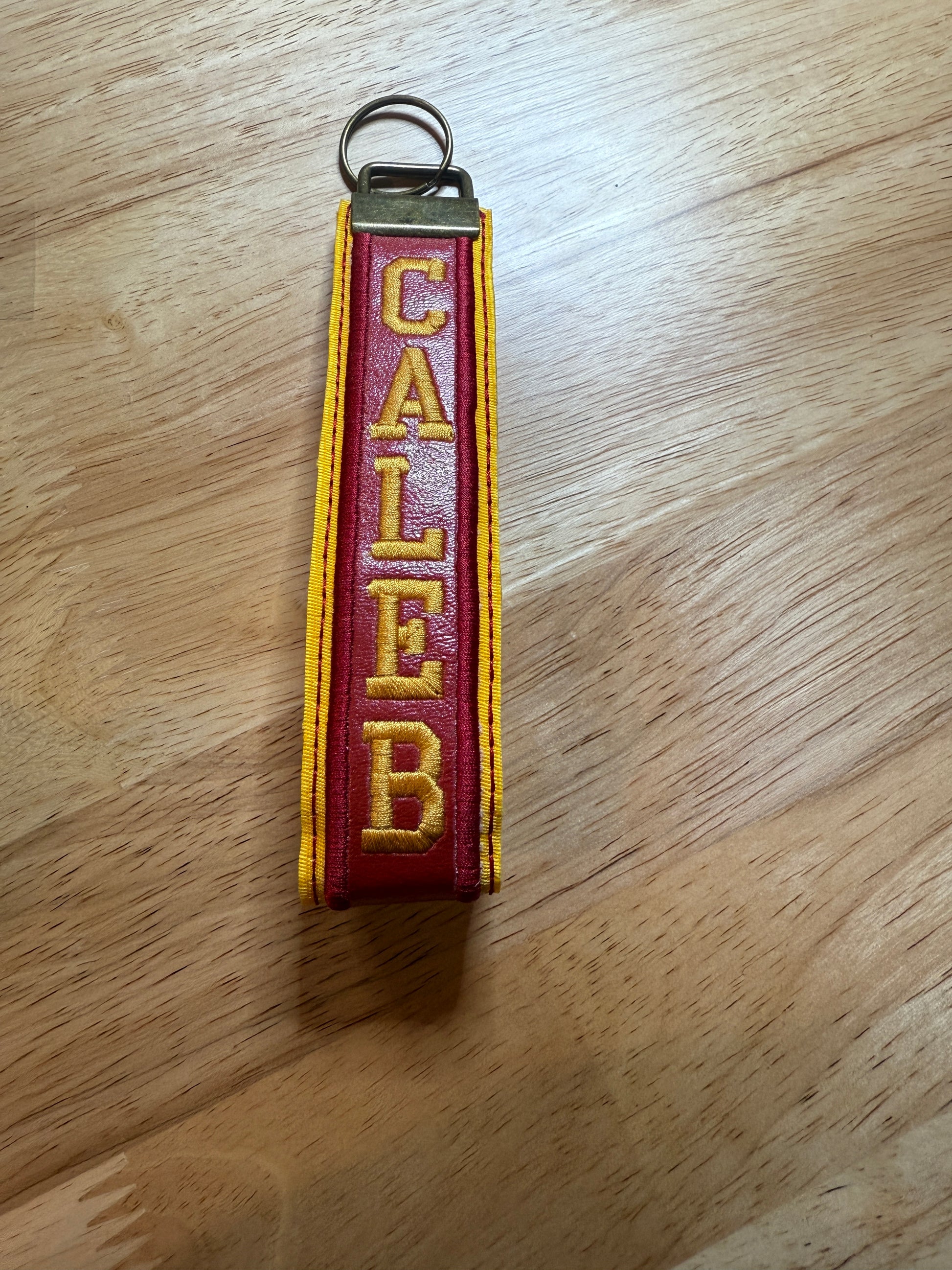 All keychains come with TUSKEGEE embroidered on the front. Key fob is made with faux leather and twill in Crimson and Gold...and is sure to be admired by anyone who sets their eyes on it.